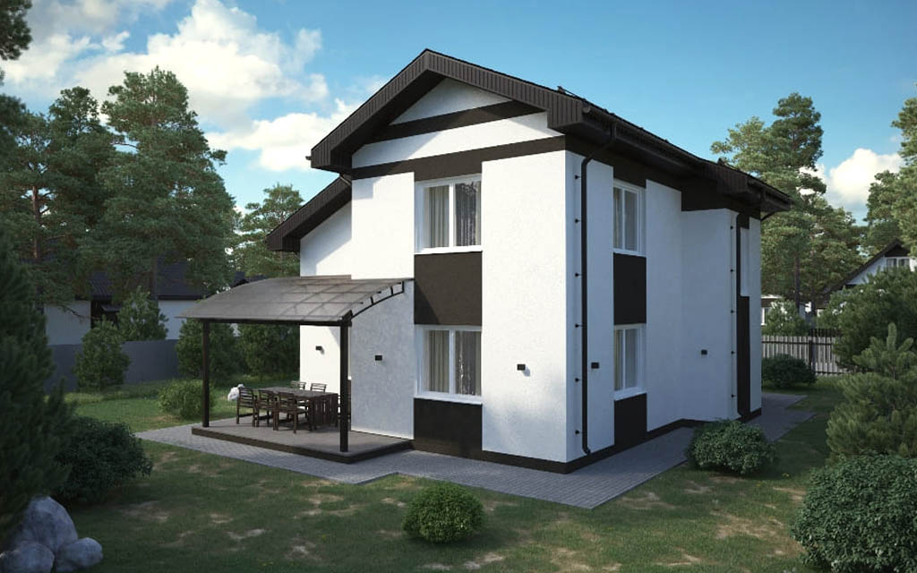 Индивидуальный двухэтажный дом из керамзитобетона со свободной планировкой и капитальной террасой. Участок 6-16 соток.