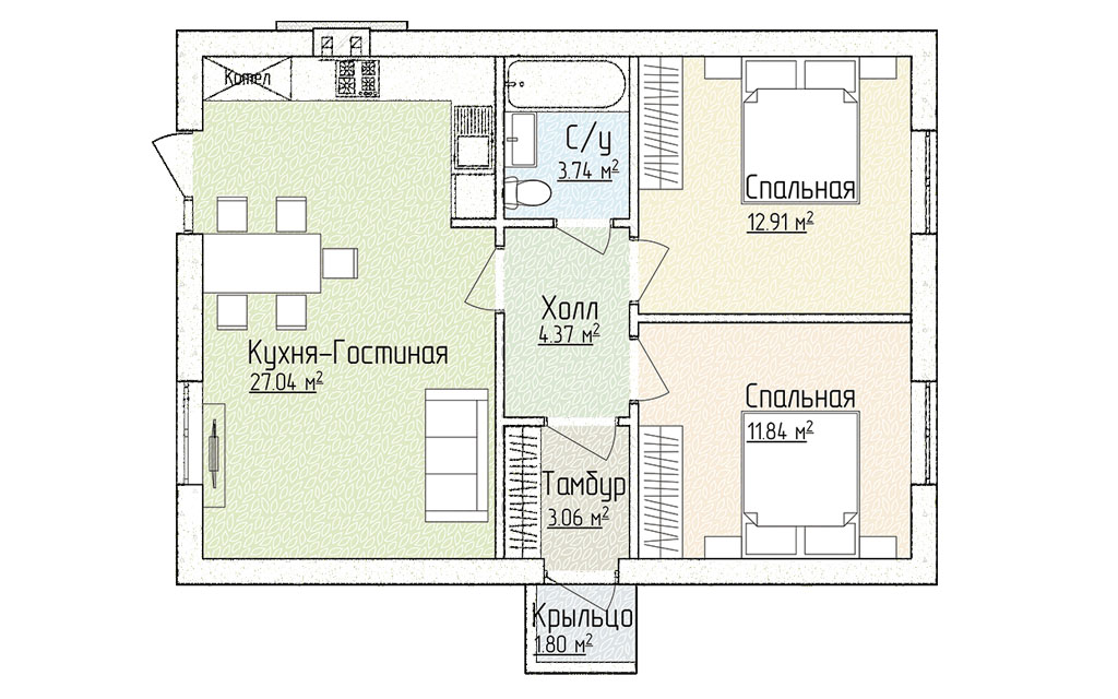 Индивидуальный одноэтажный дом из газобетона со свободной планировкой. Участок 6-14 соток.