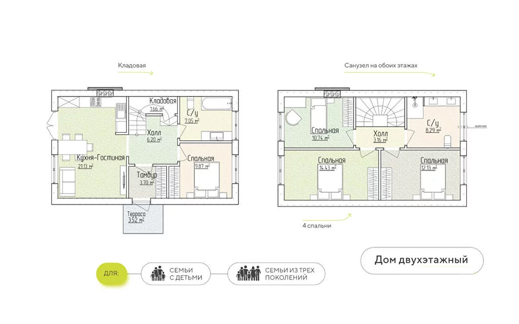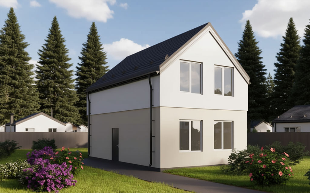 Индивидуальный двухэтажный дом из газобетонного блока (1й этаж + мансардный), ЖБИ перекрытия, со свободной планировкой. Участок на выбор от 5 соток.