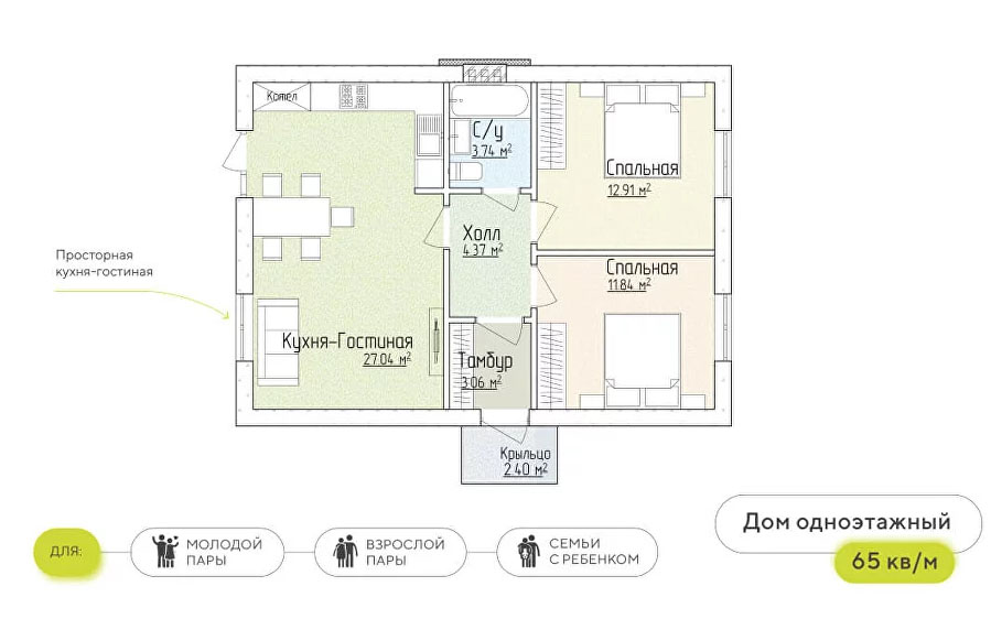 Одноэтажный дом 65 кв м в КП ЛесМой
