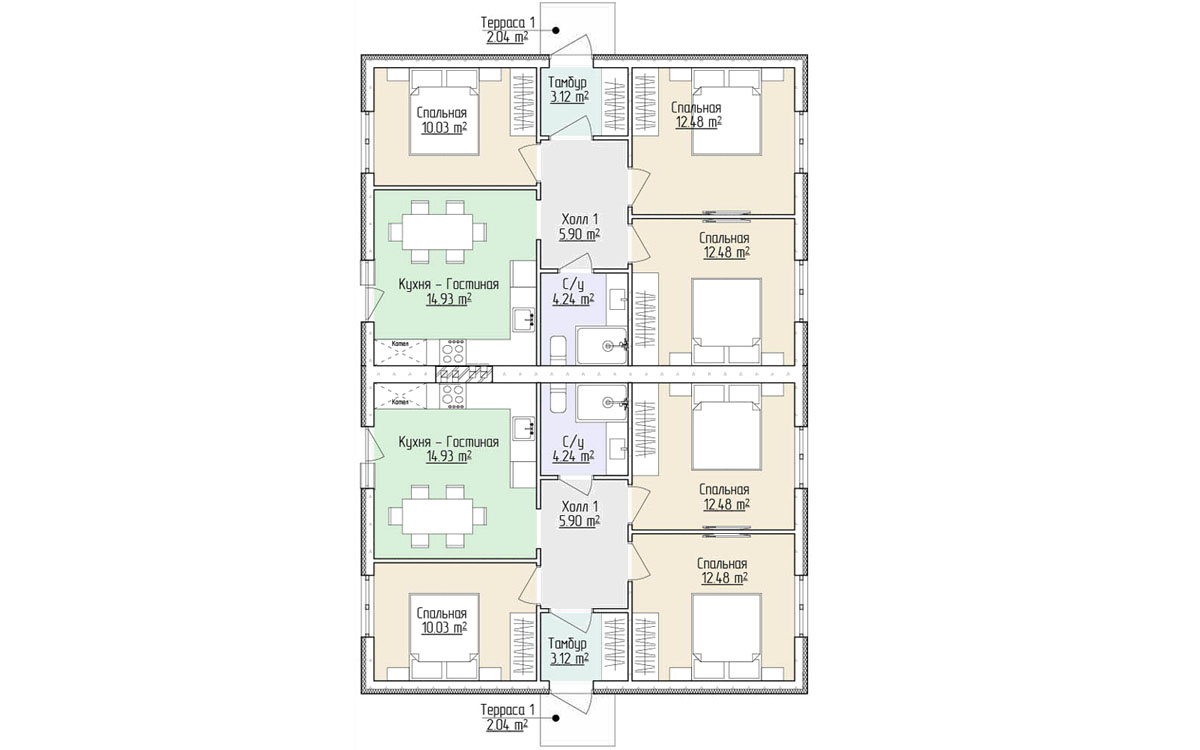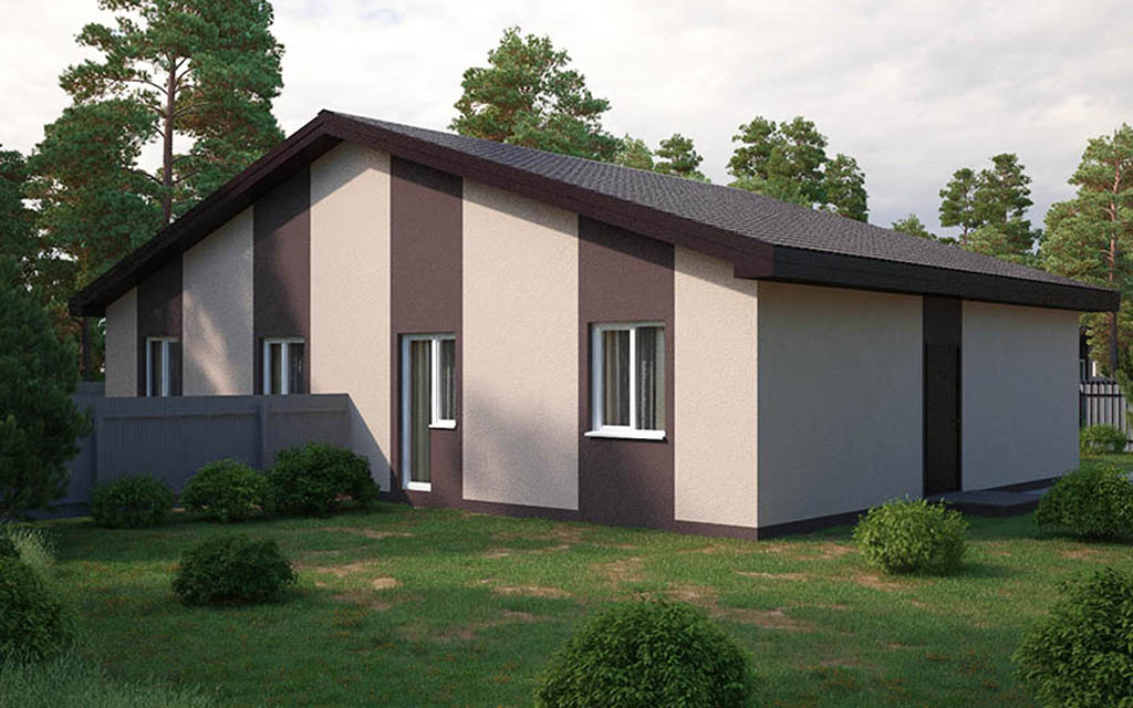 Капитальный дом на 2 семьи (дуплекс, таунхаус) для постоянного проживания. У каждой семьи отдельный вход на своем участке. Дуплекс является более экономным вариантом, так как цена и коммунальные платежи ниже, чем у индивидуального дома.